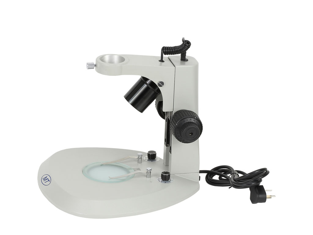 型號名稱:SD8-D底座組 說明: ● 鏡架內置可調角度、可調亮度6V/10W帶反光杯鹵素上光入射照明光源 ● 底座內置110V或220V/5W熒光燈下光透射照明 ● 可單獨使用或者同時使用上光源或下光源照明,分離式各種插頭電源線 ● 鏡體安裝孔直徑Φ45mm ● 方立柱調焦范圍100mm ● 中心工作臺直徑Φ95mm